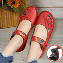 kvinnors rött läder barfota mary jane flats – broderade blommiga fritidskomfortskor med kardborreband
